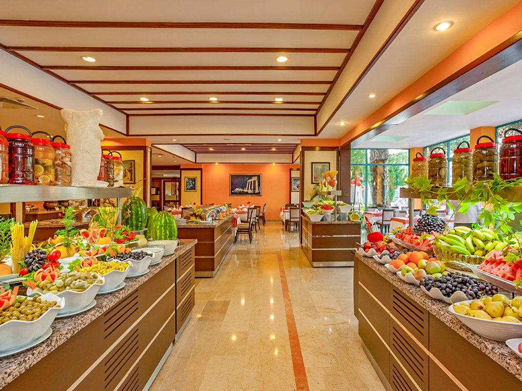 Huvudrestaurangen dukar fram stora bufféer till frukost, lunch och kvällsmat, och i anslutning till det hemtrevliga restaurangområdet ligger en härlig utomhusterrass där ni kan avnjuta era måltider. På hotellområdet finns också en lobbybar där ni kan ta något svalkande att dricka, och vid den ena poolen är det möjligt att prova på en lokal specialitet – nämligen de läckra turkiska pannkakorna gözleme. Alla lokala drycker ingår i All Inclusive-programmet.