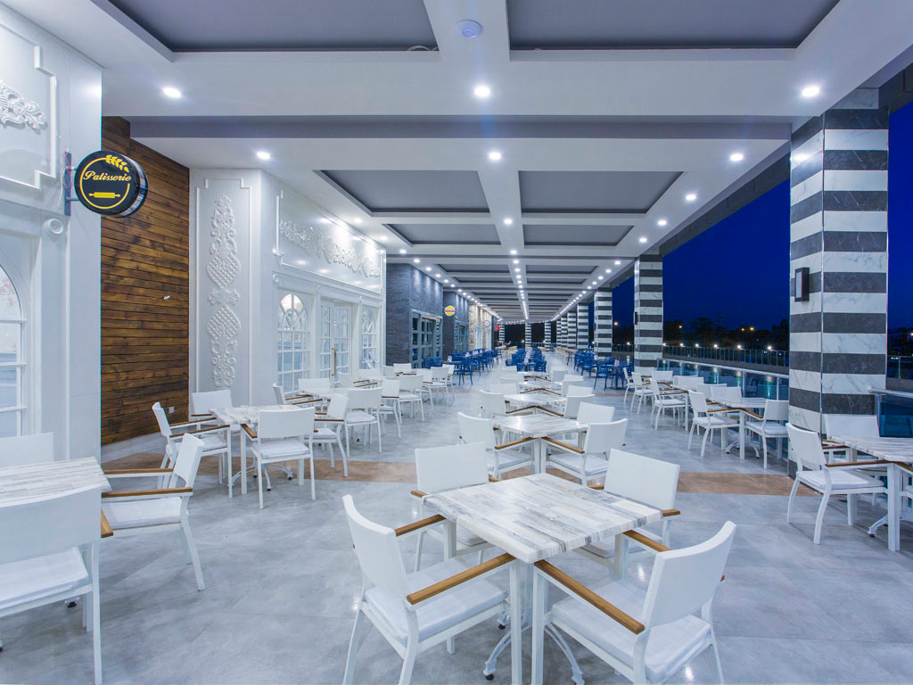 På Eftalia Ocean behöver du aldrig gå hungrig – för här är det smidig All Inclusive som gäller! Frukost, lunch och middag serveras som bufféer i huvudrestaurangen, Vissa dagar hålls också festliga temakvällar, exempelvis turkisk afton, som sätter sin prägel på både servering och bufféutbud.