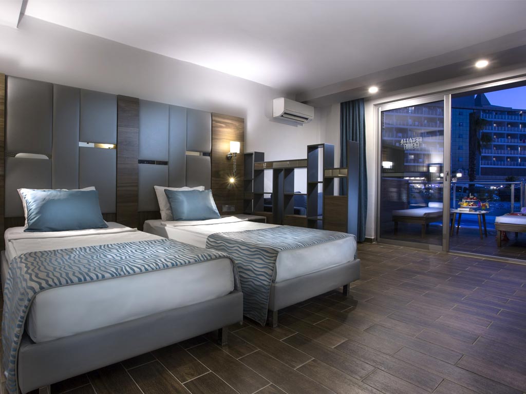 Eftalia Ocean passa perfekt till dig som reser med barn och som vill samla din stora familj i rymliga och moderna rum. Rummen går i vita och blåa nyanser med havet som inspiration.