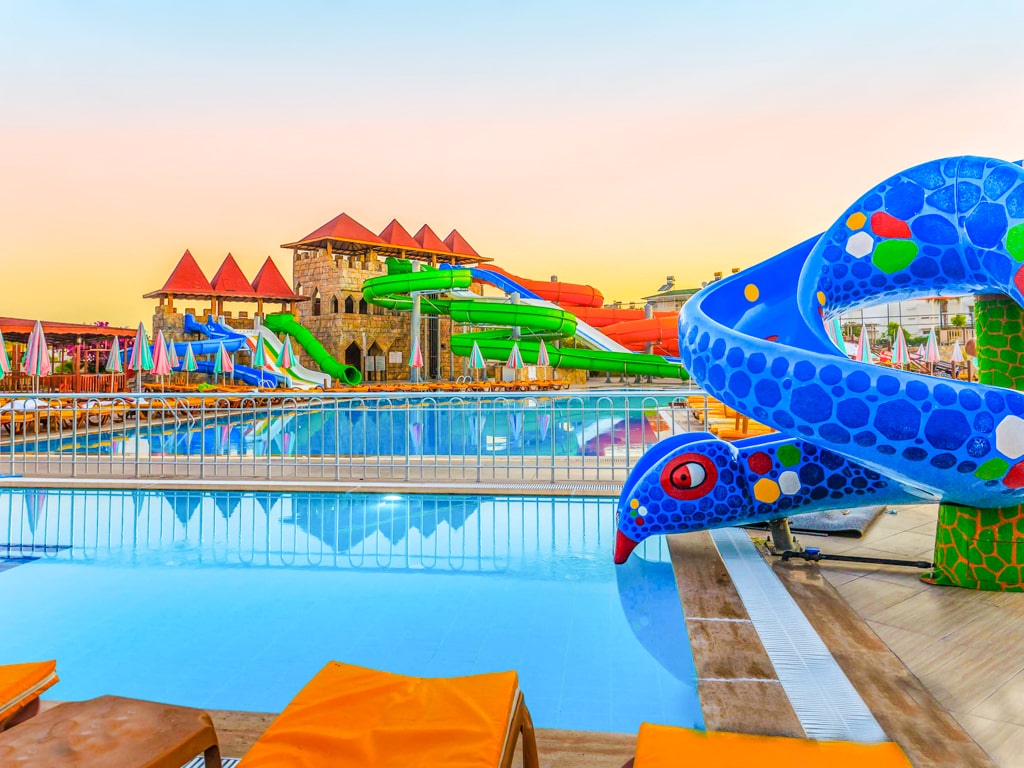 På Eftalia Villages hotellområde finns en vattenpark med flera fartfyllda vattenrutschbanor, en något mindre livlig pool för dig över 18 år och en stor aktivitetspool med underhållning, musik och skojiga aktiviteter.