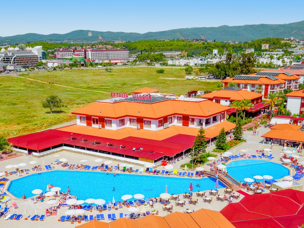 Eftalia Village ligger i Türkler, nära den lilla byn Avsallar där du hittar många caféer, restauranger och butiker. Från hotellet är det ungefär en halvtimmes bilfärd till den populära semesterorten Alanya.