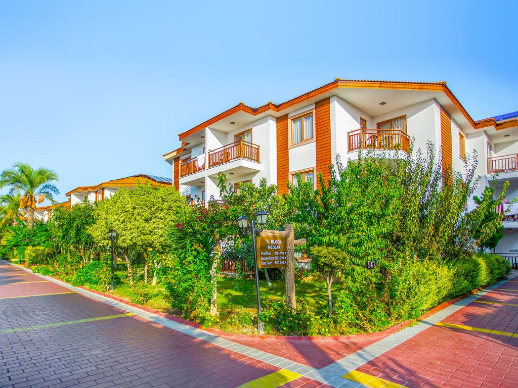 På Eftalia Village välkomnas du in i en levande miljö där grönskande trädgårdar mellan charmiga hus skapar en hemtrevlig semesterstämning.