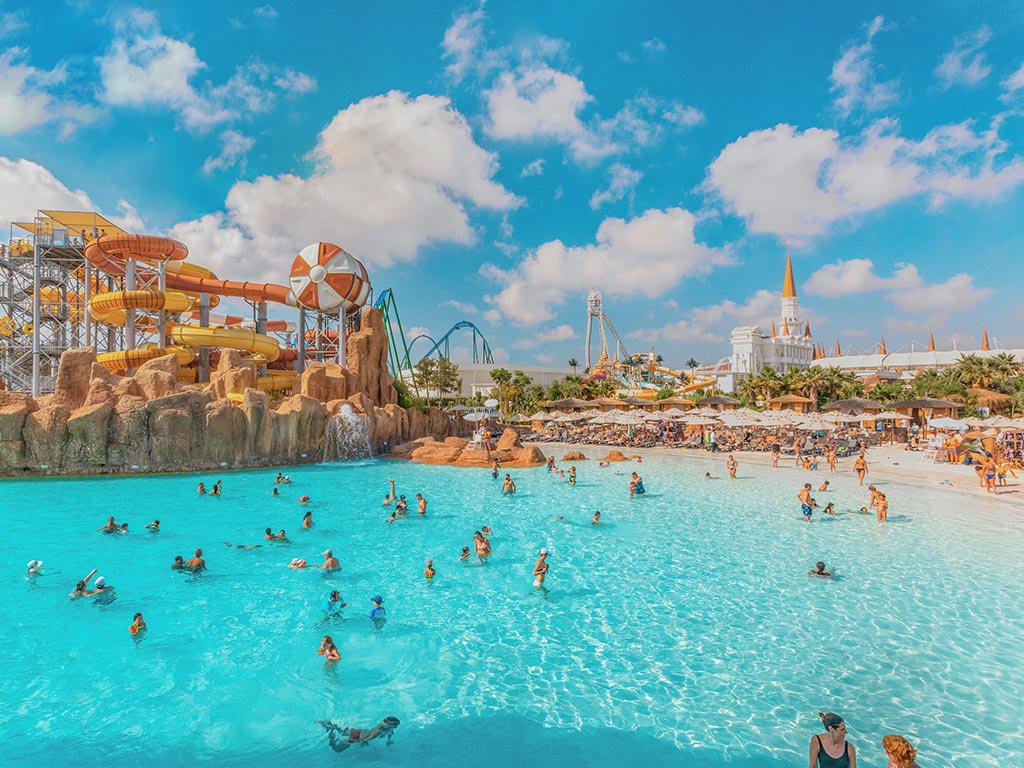 Här finns massor av sköna pooler och mängder av vattenrutschbanor, som kommer locka både våghalsar och vattenälskare. Prova att hålla tungan rätt i mun och lär dig att stå upprätt på en surfbräda, eller ta en dyktur i det stora akvariet.