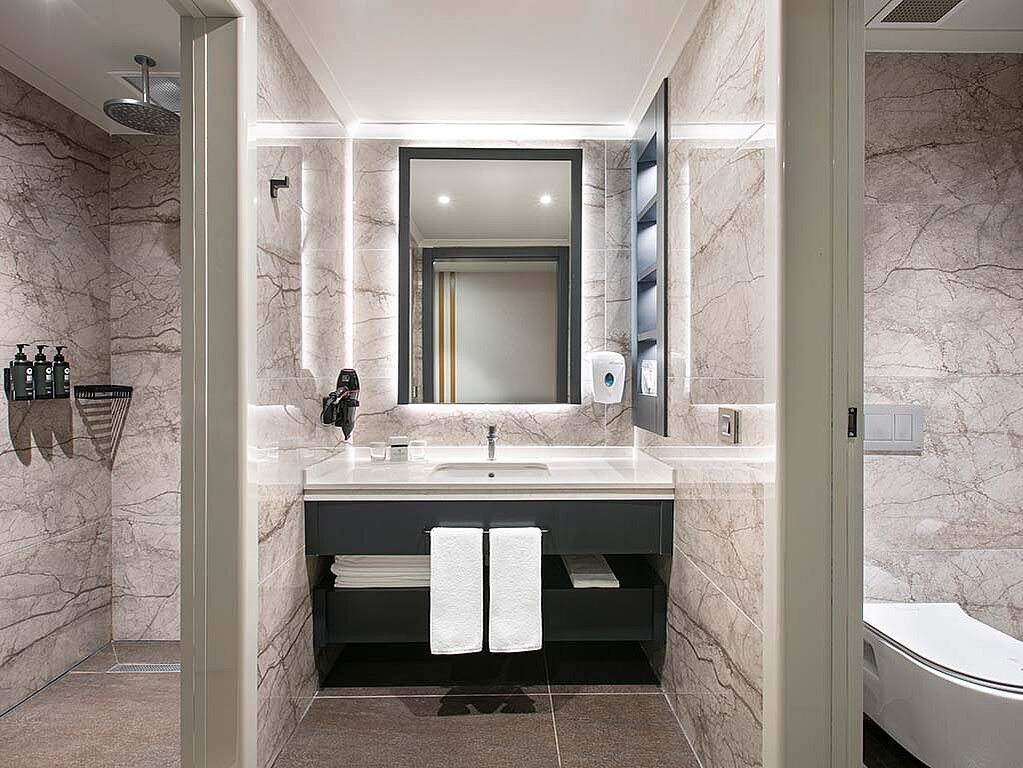 I den svala, ljusgrå miljön med påkostade inredningsdetaljer blir ditt hotellrum på Mylome ett skönt och exklusivt krypin undan dagens äventyr i solen. Alla rum har laminatgolv förutom swim up-rummen som har klinkergolv.