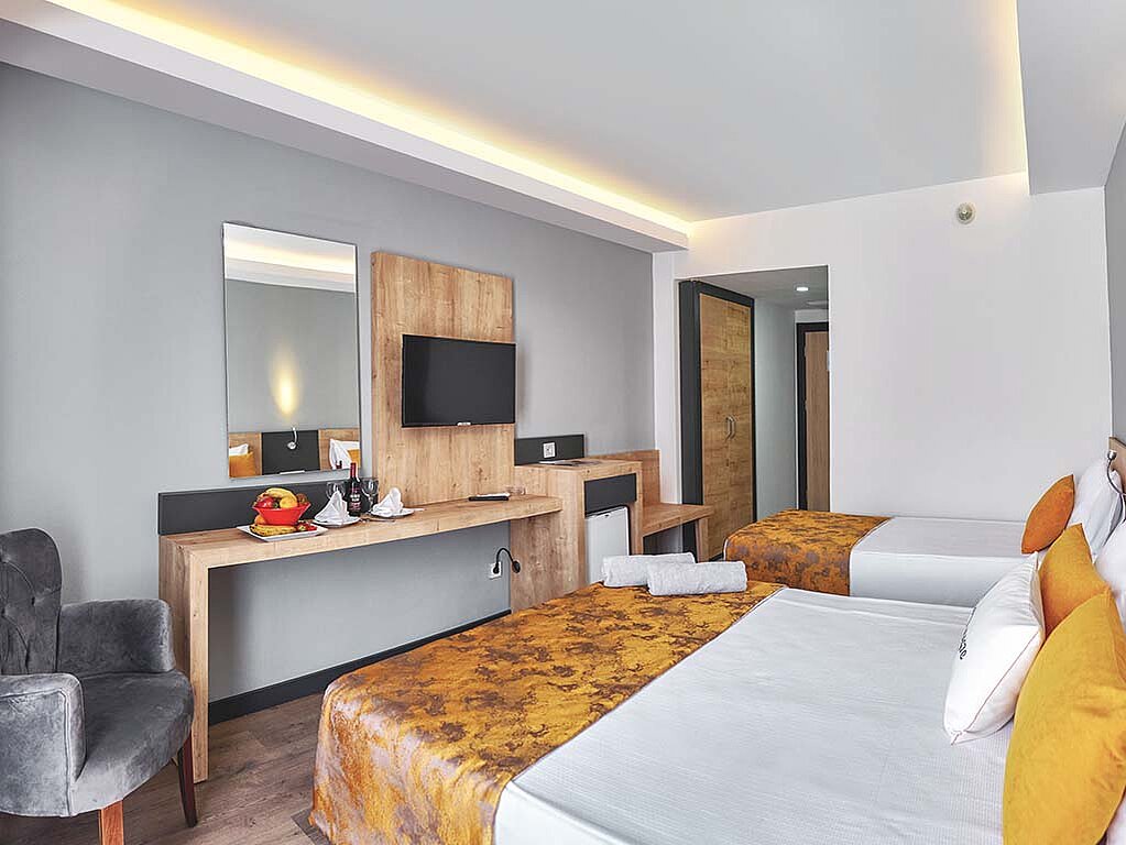 Vi rekommenderar det här hotellet till barnfamiljer och yngre såväl som äldre par. Här trivs du som reser med visst budgetfokus, och är du förstagångsbesökare i Side kommer du att trivas som fisken i vattnet.