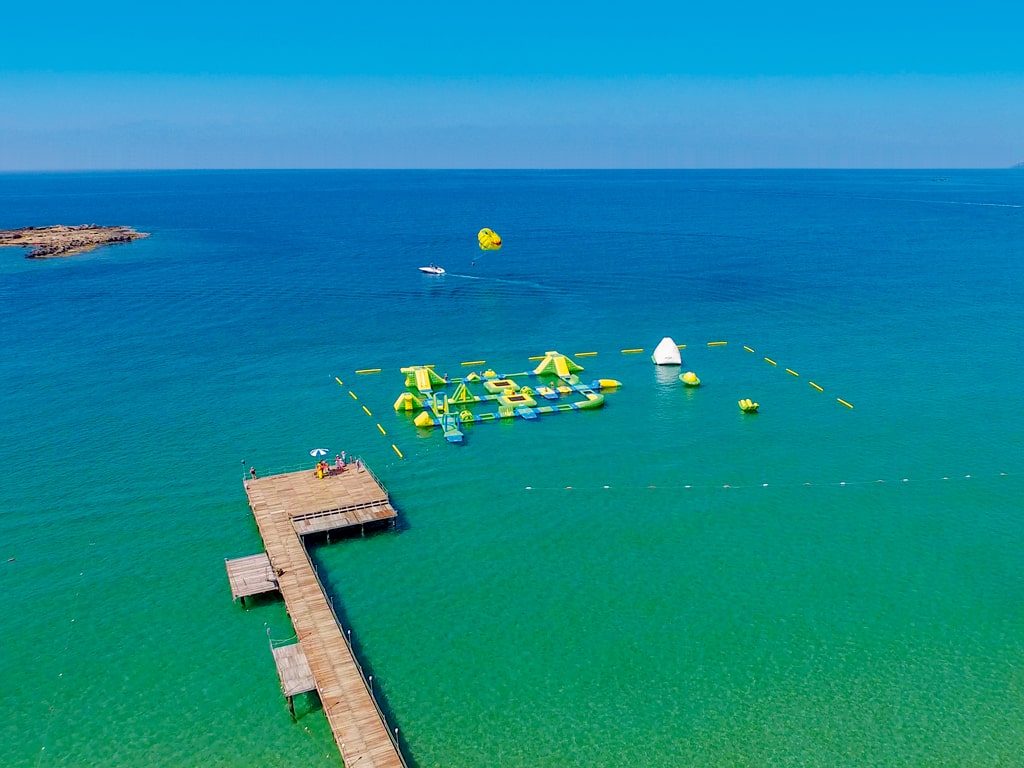 Här finns pooler för alla smaker! Gillar du lugn och ro kan du nyttja Pegasos Resorts lugnare pool för vuxna. Vill du ha musik är det poolerna vid Pegasos Club eller Royal som gäller. Och vill du åka vattenrutschbana finns de mellan hotellen Pegasos Resort och Royal i Captain Nemos Castle för de större barnen, eller ännu mindre banor för de minsta. Behöver du en paus från solen finns inomhuspoolerna som ligger i Pegasos Resort och i Pegasos Royal. Utanför Pegasos Club ligger en lång pir och bredvid den en spännande wipeout-bana. Den får du använda utan extra kostnad när du reser med oss!
