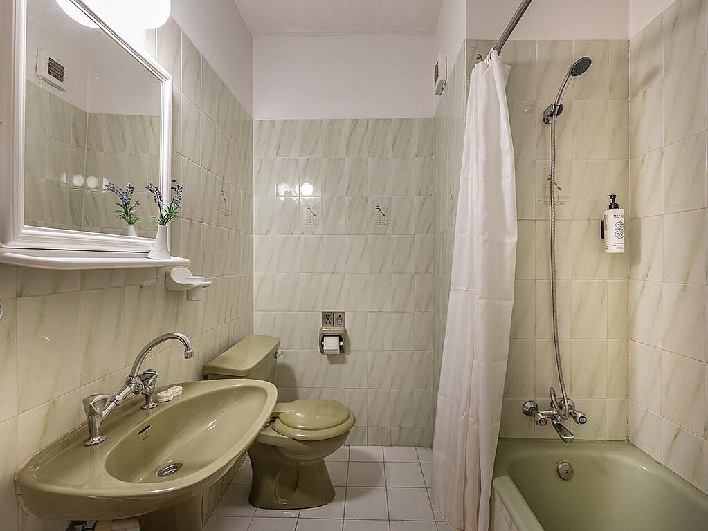 I 2-rumslägenheten på 41 m² finns två riktiga sängplatser och två extrasängar i form av bäddsoffor, som mäter 185x96 cm vardera. Rummet kräver minst två fullt betalande, här kan bo max tre vuxna eller två vuxna och två barn.