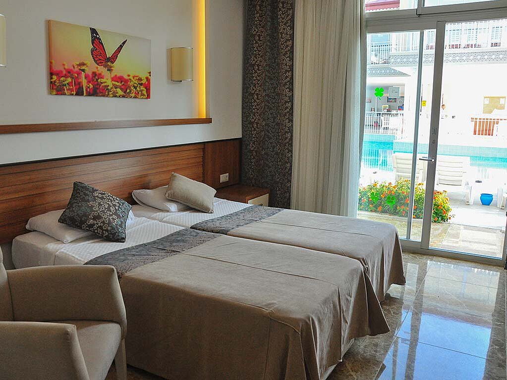 Hotellrummen på Sun Club Side är enkla men stilfulla. De har en klassisk design dekorerade med textilier i rogivande färgskala. Rummen har antingen klinkergolv eller laminatgolv.