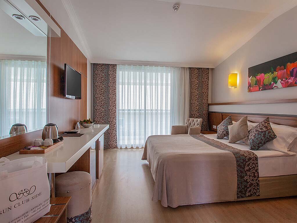I den sydturkiska semesterns huvudstad Side ligger stamgästfavoriten Sun Club Side. Det är ett All Inclusive-hotell i klassisk country club-stil som ligger på ett turiststråk. Inne på hotellområdet råder däremot en fridfull atmosfär bland välskötta trädgårdar och grönska.