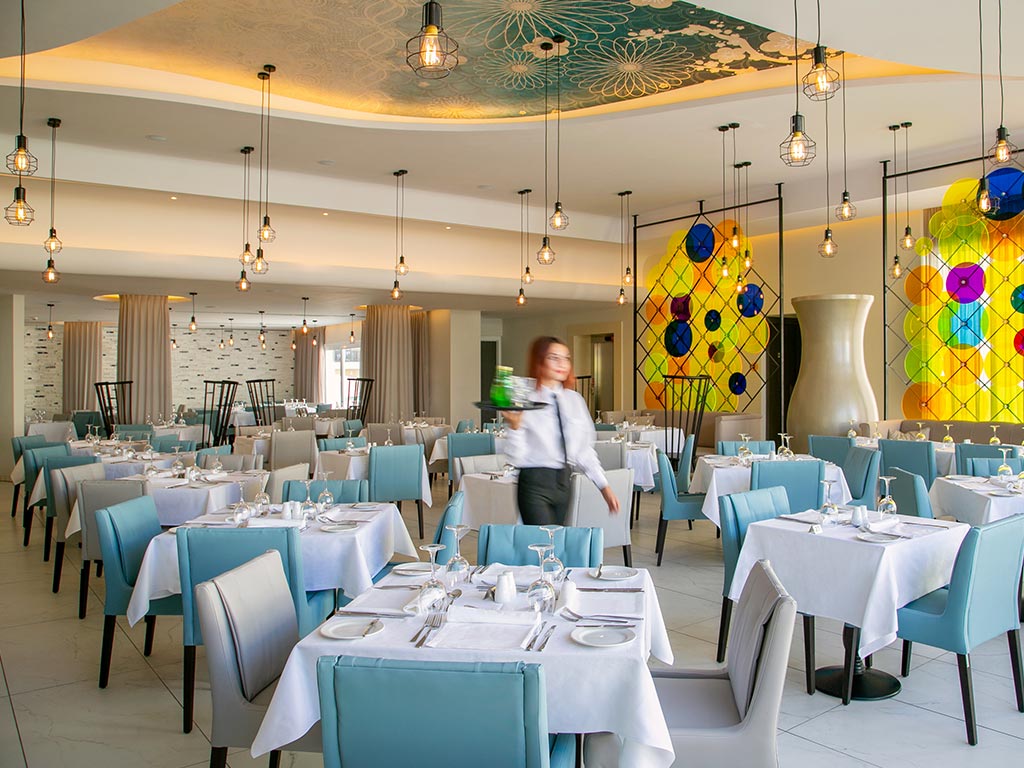 Till det här hotellet reser du med All Inclusive-paket, vilket innebär att nästan all mat och dryck redan är inkluderad i din resa. I hotellets färgglada buffétrestaurang, där dina tre huvudmåltider serveras är kvaliteten på maten är en hög prioritet. Du har obegränsad tillgång till varierade förrätter och huvudrätter och kan avsluta din måltid med olika desserter. Ibland har hotellet olika temakvällar i restaurangen. Eller vad sägs om mexikansk, asiatisk eller arabisk afton? Du kan välja att sitta inomhus eller ute på två olika terrasser medan du njuter av en mängd spännande matalternativ.