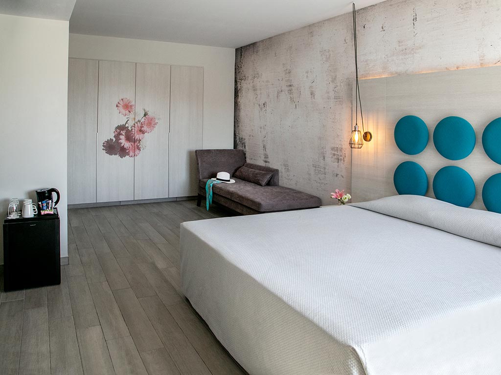 I dubbelrummet på 25 m² finns två riktiga sängplatser och en extrasäng i form av en bäddsoffa, som mäter 80x180 cm. Rummet kräver minst två fullt betalande, här kan bo max tre vuxna och det är möjligt att få barnpris för ett barn. Du kan välja att uppgradera landutsikten till poolutsikt mot ett tillägg. Dubbelrummet kan bokas som ett enkelrum mot ett tillägg.