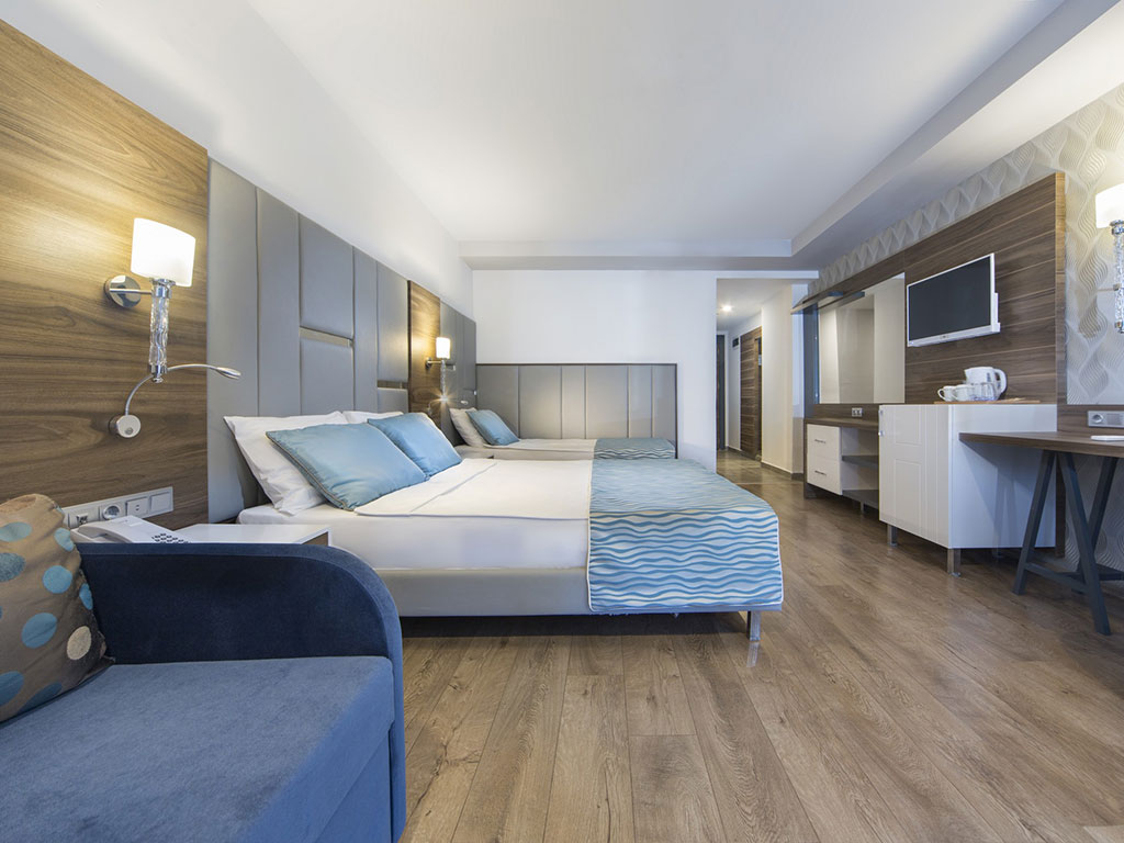Vi erbjuder mängder av fina familjehotell med generösa barnpriser och stora familjesviter. På Eftalia Ocean kan ni till exempel bo upp till 7 personer i samma rum med barnpris t.o.m. 17 år för upp till tre barn!
