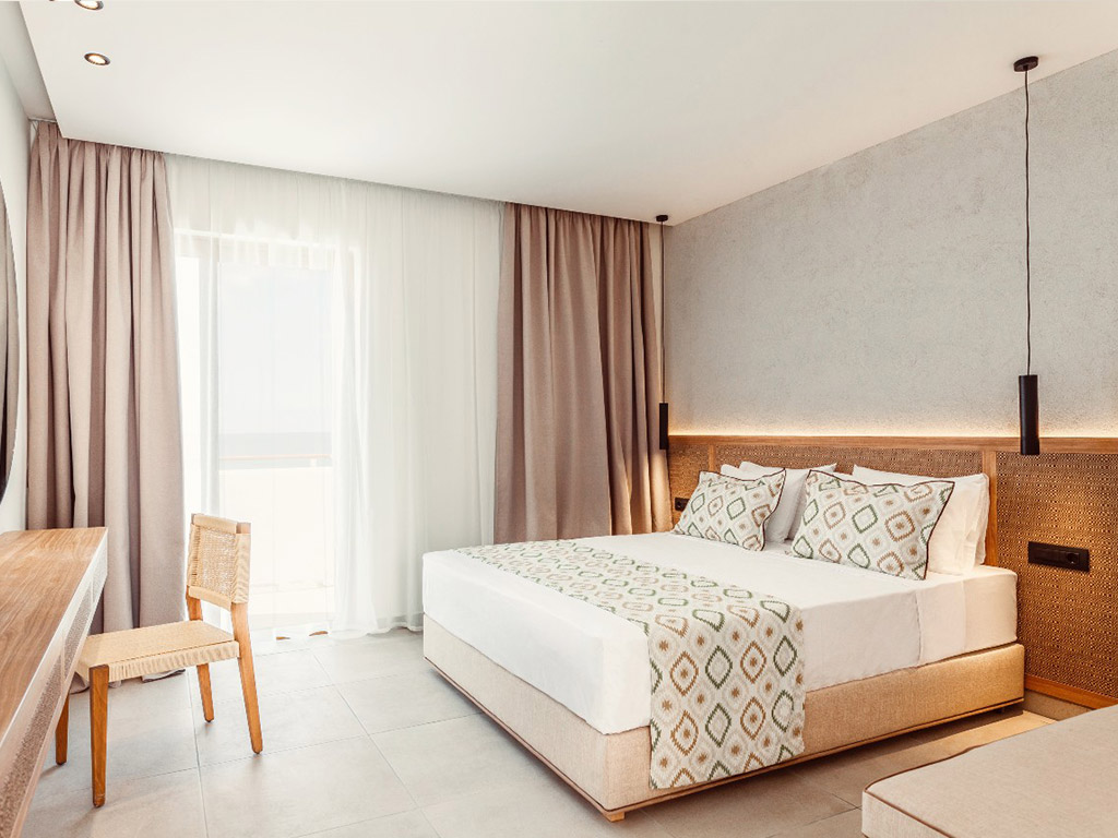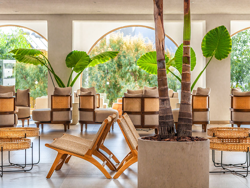 Tänk dig en liten resort, där inredningen går i jordnära toner. Där naturmaterial varvas med djungelväxter och grekiskt vitputsade fasader. Det är vad som möter ögat när du kommer till Blue Sea Island utanför byn Kolymbia på Rhodos.