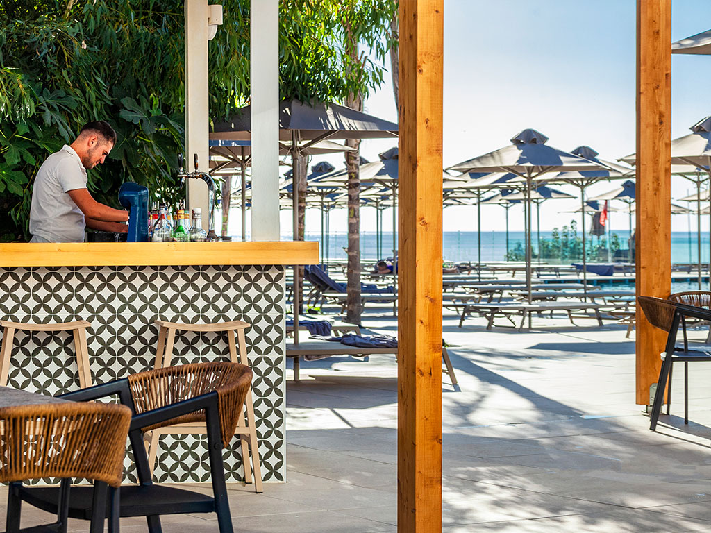 Det finns tre barer som tillhör huvudbyggnaden: lobbybaren och strandbaren som serverar kaffe, drinkar och cocktails och poolbaren vid huvudpoolen. Bland vattenrutschbanorna vid annexbyggnaden ligger en fjärde bar som serverar öl, läsk och snacks.