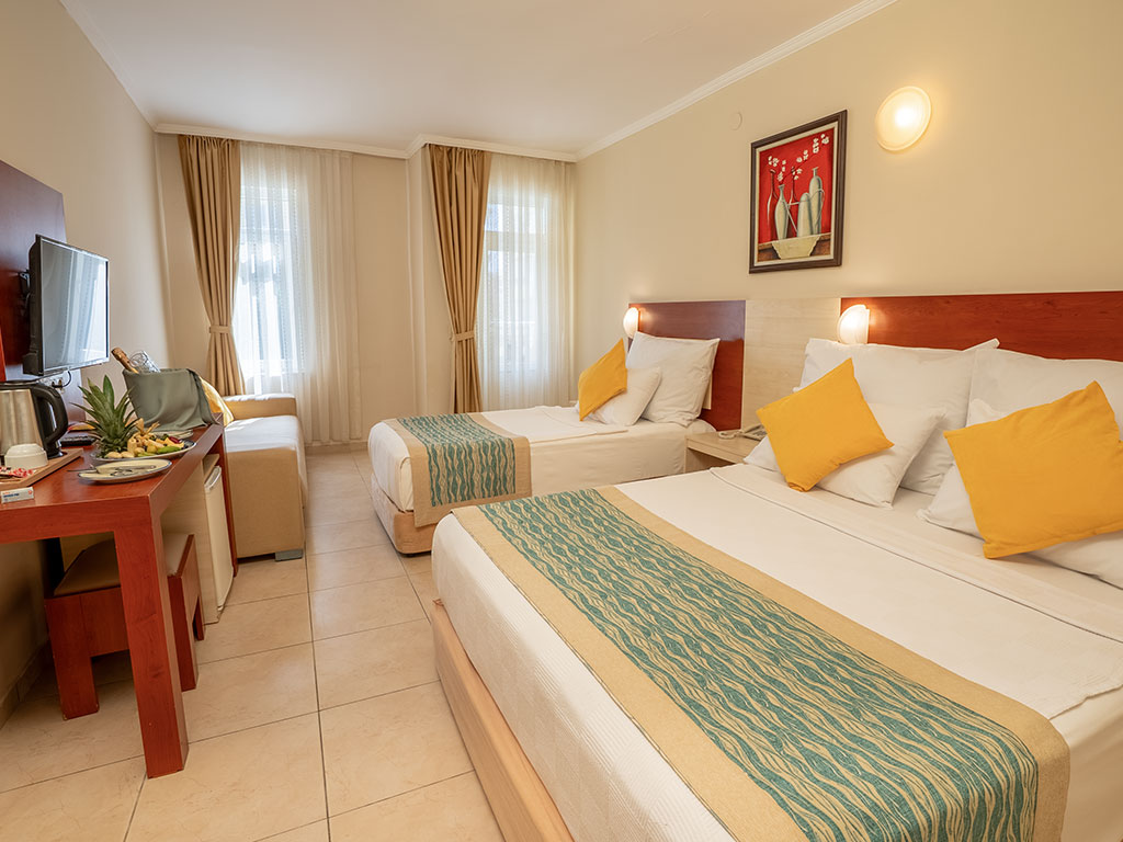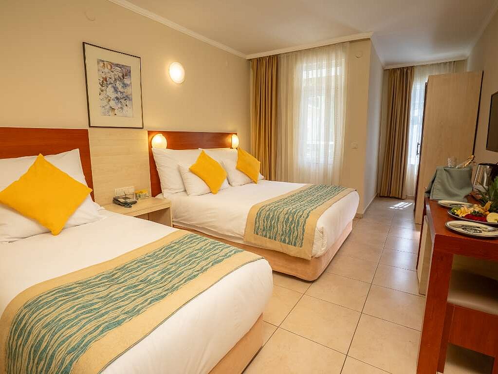 På Citrus Plaza Hotel bor du i rum som är gjorda för en enkel och bekväm semester, där vardagsdetaljerna finns på plats. Oavsett om du vill börja dagen i lugn och ro eller bara ha en skön bas mellan strand, pool och stadsliv, är rummen utrustade för att göra vistelsen smidig.