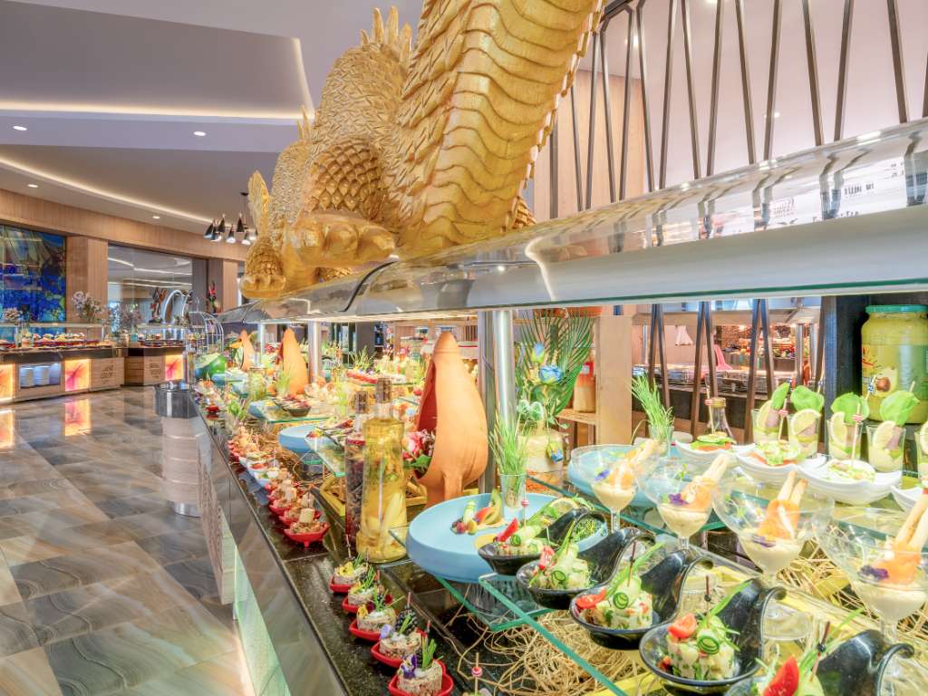 Delphin Be Resort erbjuder ett fantastiskt All Inclusive-program. I huvudrestaurangen serveras dagens alla måltider i form av breda och välsmakande bufféer med olika teman. Den fina lokalen är uppdelad i mindre sektioner, vilket skapar en mysig atmosfär och dessutom minskar ljudnivån i restaurangen.