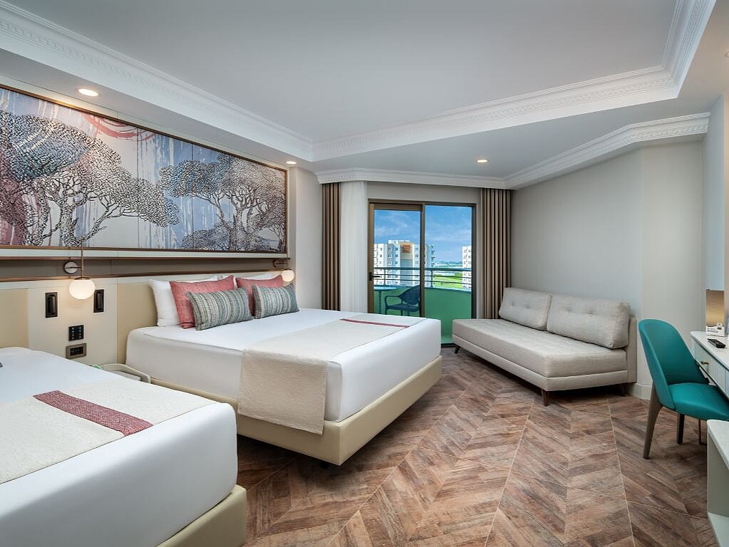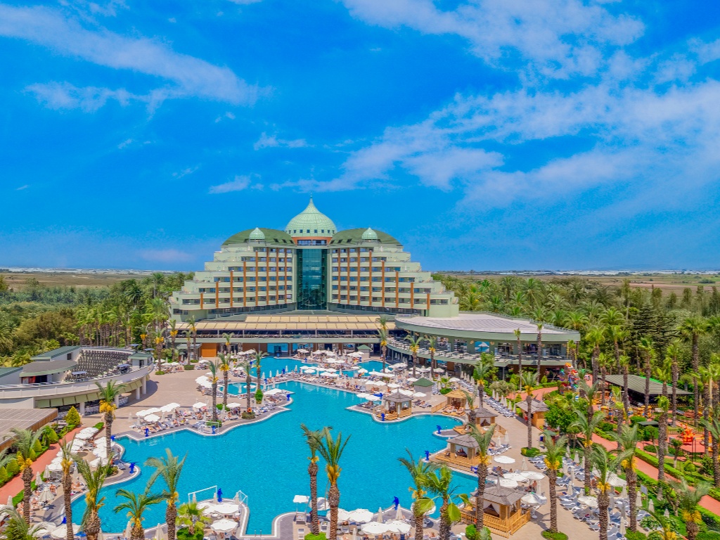 Ett av Lara Beachs mest etablerade och omtyckta lyxhotell – nu i Nazars program. Delphin Palace genomgick en omfattande renovering 2025. Här väntar ett stort poollandskap, en färgsprakande vattenpark och massor av semesterglädje. Stranden nedanför hotellet och den långa piren bjuder på sköna soltimmar vid havet, barnen trivs i den internationella barnklubben (4–12 år) och på det populära minitivolit. Den korta transfern från flygplatsen gör resan enkel för både familjer och par.