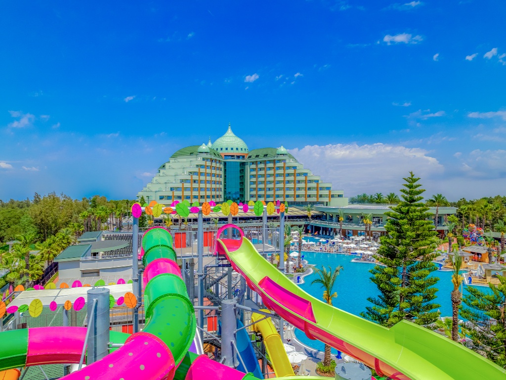 Hotellets egen vattenpark ligger mitt i resorten, vilket gör det väldigt enkelt att röra sig mellan huvudpoolerna och vattenrutschbanorna. Det finns flera vattenrutschbanor med olika tempon och svårighetsnivåer, med passande alternativ för både tonåringar och vuxna. De snällare vattenrutschbanorna sitter nära grundare partier medan de snabbare ger mer fart och pirr i magen.