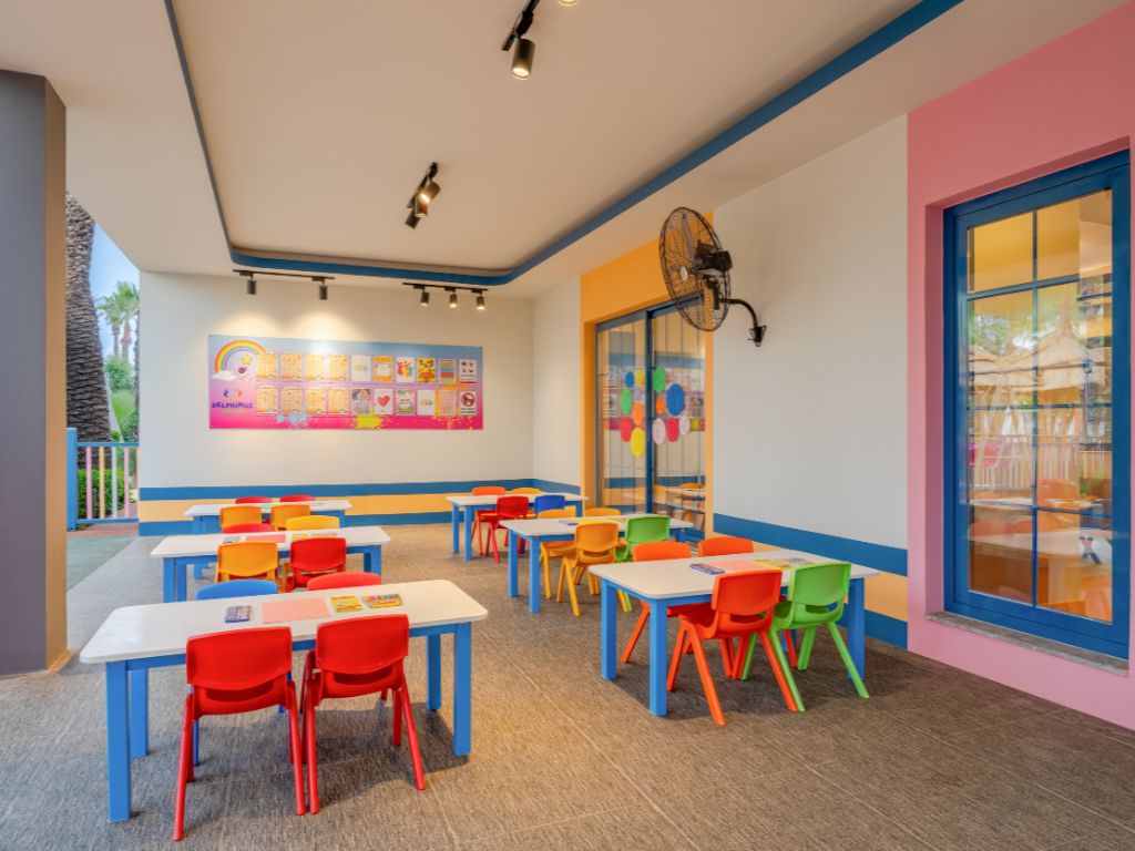 I den internationella barnklubben väntar pyssel, lekar och uteaktiviteter ledda av ett erfaret team som pratar bland annat engelska, tyska och turkiska. Programmet följer dags- och veckoschema med aktiviteter för både yngre och lite äldre barn.