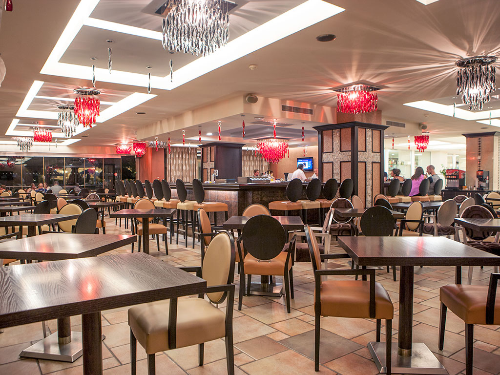 Det här hotellet erbjuder en gedigen frukost-, lunch- och middagsbuffé. Allt enligt hotellets eget sammansatta All Inclusive-koncept med amerikanskt tema. Snacks och enklare rätter serverar hotellet i poolbaren.