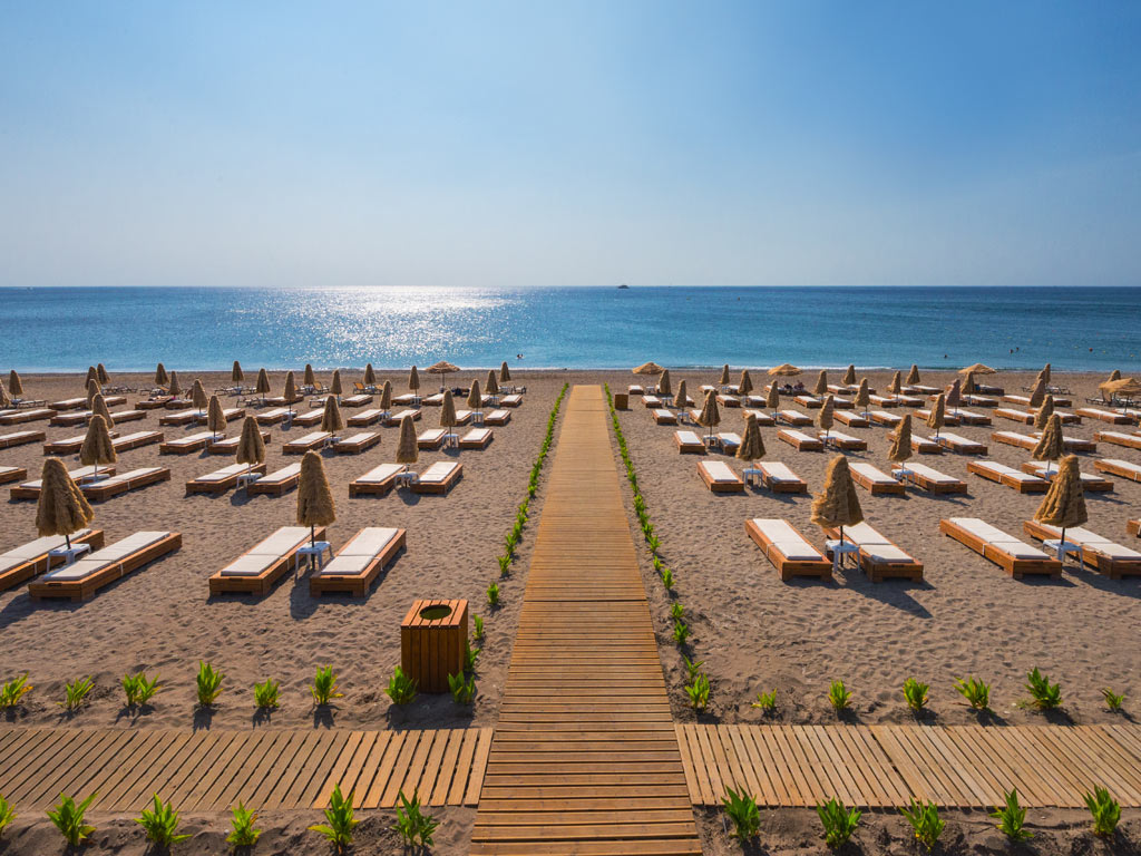 Stranden ligger ca 250 meter från hotellet, och är en härlig sandstrand med inslag av små stenar. Det är en kort promenad hit via hotellets privata tunnel, men du kan såklart också välja att åka med hotellets golfbil, som kör var tjugonde minut! Här finns en strandbar som serverar mat och dryck mot betalning.