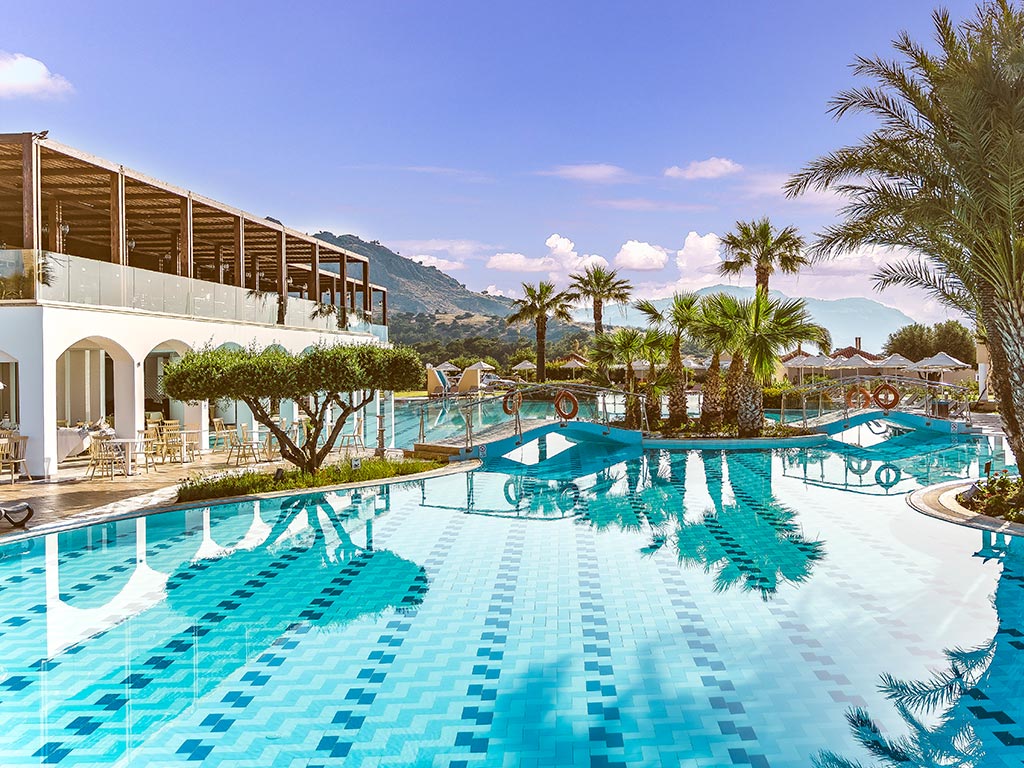 En lite lugnare atmosfär hittar du vid den lugna poolen nära stranden, eller vid inomhuspoolen som välkomnar vuxna gäster. När du reser med oss till Lindos Imperial har du dessutom möjlighet att använda poolen i området där hotellets exklusiva sviter ligger.