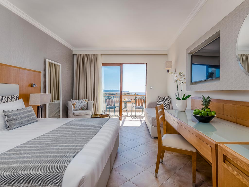 På Lindos Imperial bor du i hemtrevliga, rymliga rum i lugna färger. Rummen ligger i olika byggnader utspridda över hela hotellområdets stora yta. Alla rum har klinkergolv.
