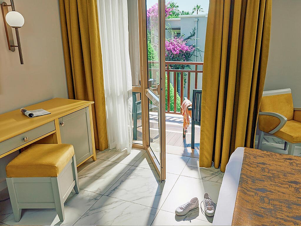 Rummen på Magic Life Belek är enkla men välplanerade och ljusa. Färgerna i rummen går i gyllene eller blå nyanser. Här kan du slappna av och finna lugnet under din semester. Alla rum har klinkergolv.