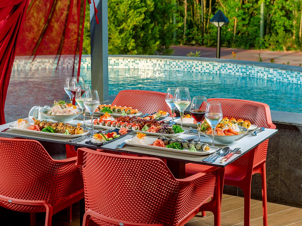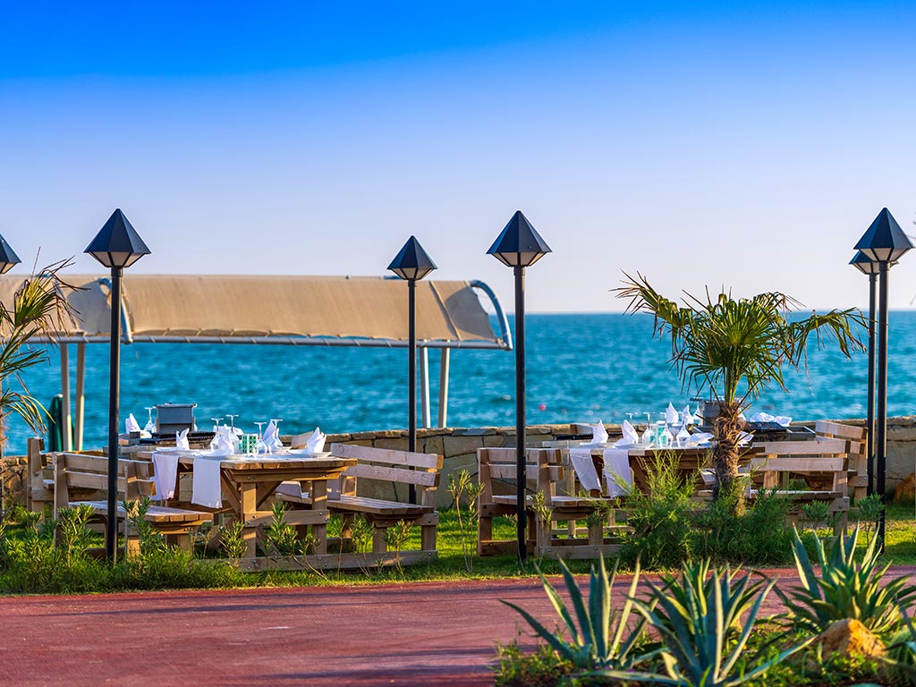 Det finns hela åtta temarestauranger att välja mellan på Megasaray Club Belek. Du har att välja på bland annat asiatiskt, italienskt, fisk, mexikanskt, grill eller turkiskt. Besöker du grillrestaurangen sitter du ute i trädgården på mysiga picknickbänkar och grillar ditt eget kött.