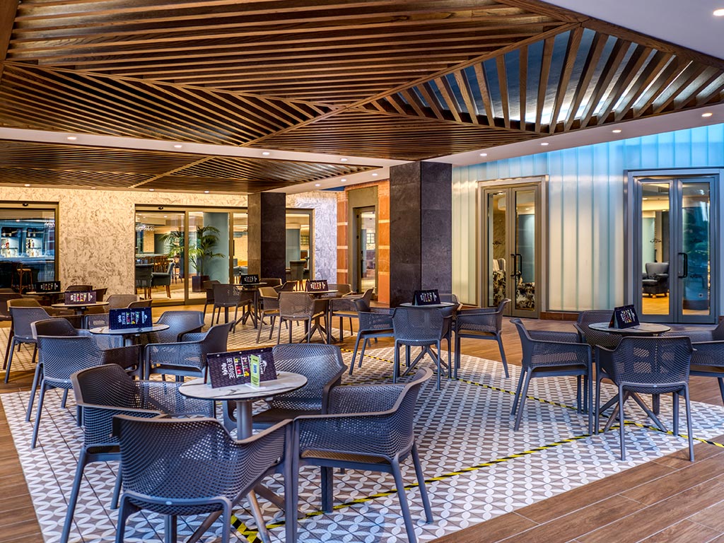 Mitt i hjärtat av hotellområdet ligger den turkosa coffe-shoppen. Hotellet själv beskriver den som en turkisk variant av Starbucks, med kaffedrycker gjorda på turkiskt kaffe, i turkisk stil och inredningen påminner verkligen om den populära förlagan!
