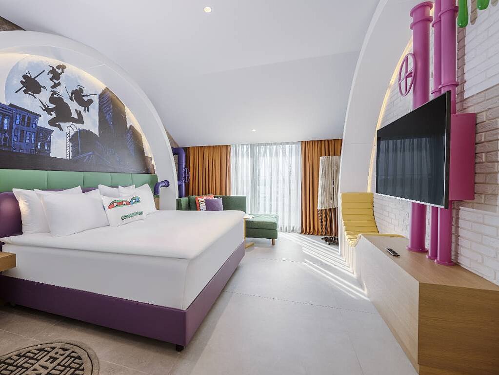 På Nickelodeon Hotels & Resorts bor du mitt i det myllrande The Land of Legends-komplexet i Belek – ett område där slott, berg- och dalbanor och nöjesparken syns redan på långt håll. När du kliver in på hotellet öppnar sig en ny värld av fantasi, färger och kreativitet, helt designad kring Nickelodeon-karaktärerna. Här är hela upplevelsen skapad för barnfamiljer som vill ha maximal lek och upplevelser, samtidigt som vuxna får ett bekvämt och bekymmersfritt boende där mycket redan ingår.
