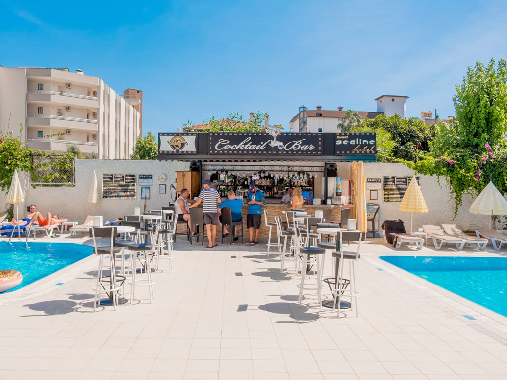 Sealine Hotel är ett litet, prisvänligt All Inclusive-hotell i Alanya, med många återkommande gäster. De flesta stamgäster är par, små familjer eller ungdomar som väljer hotellet för den avslappnade stämningen och för att kunna bo centralt.
