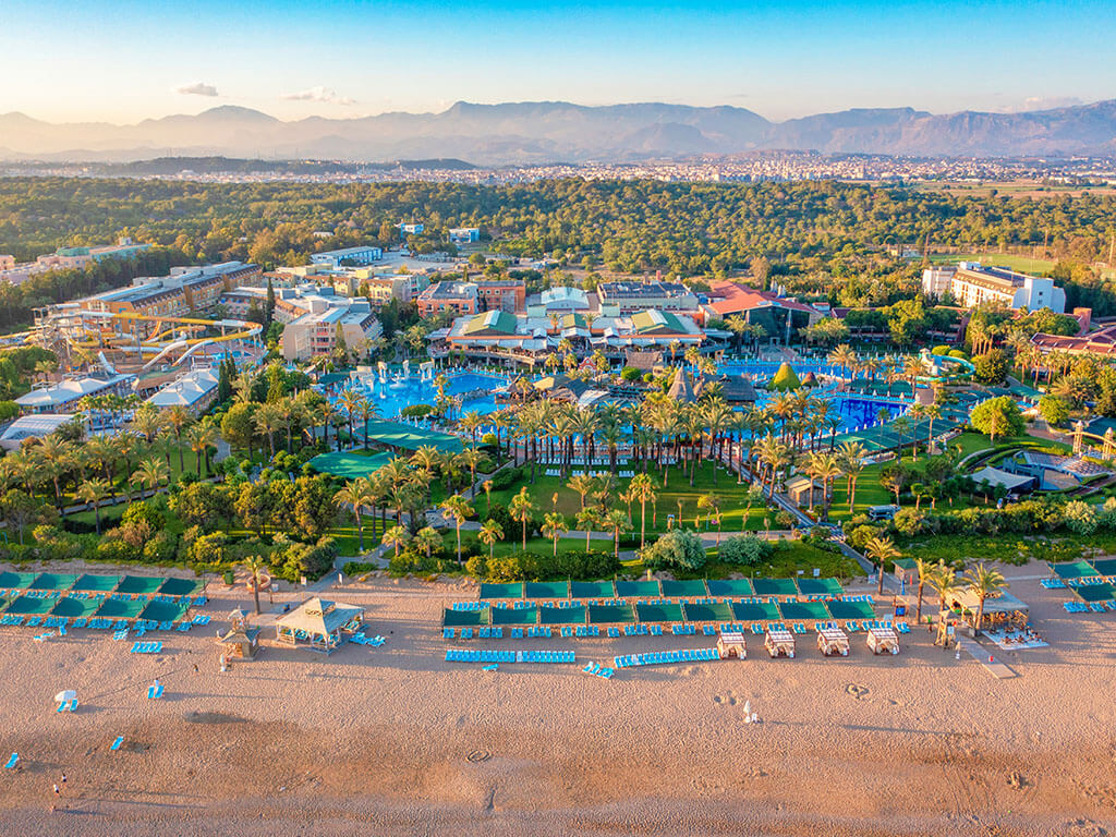 Hotellet ligger vid Side på Turkiets sydkust. Side är en fascinerande blandning av nytt och gammalt, då det är en modern semesterstad byggd vid välbevarade, romerska monument i en labyrint av mysiga små gator. Skäm bort dig själv med en middag på en av de många fina restaurangerna, shoppa loss i de spännande butikerna eller gå på en promenad längs havet och njut av den magiska stämningen under stjärnorna i skenet av de upplysta ruinerna.