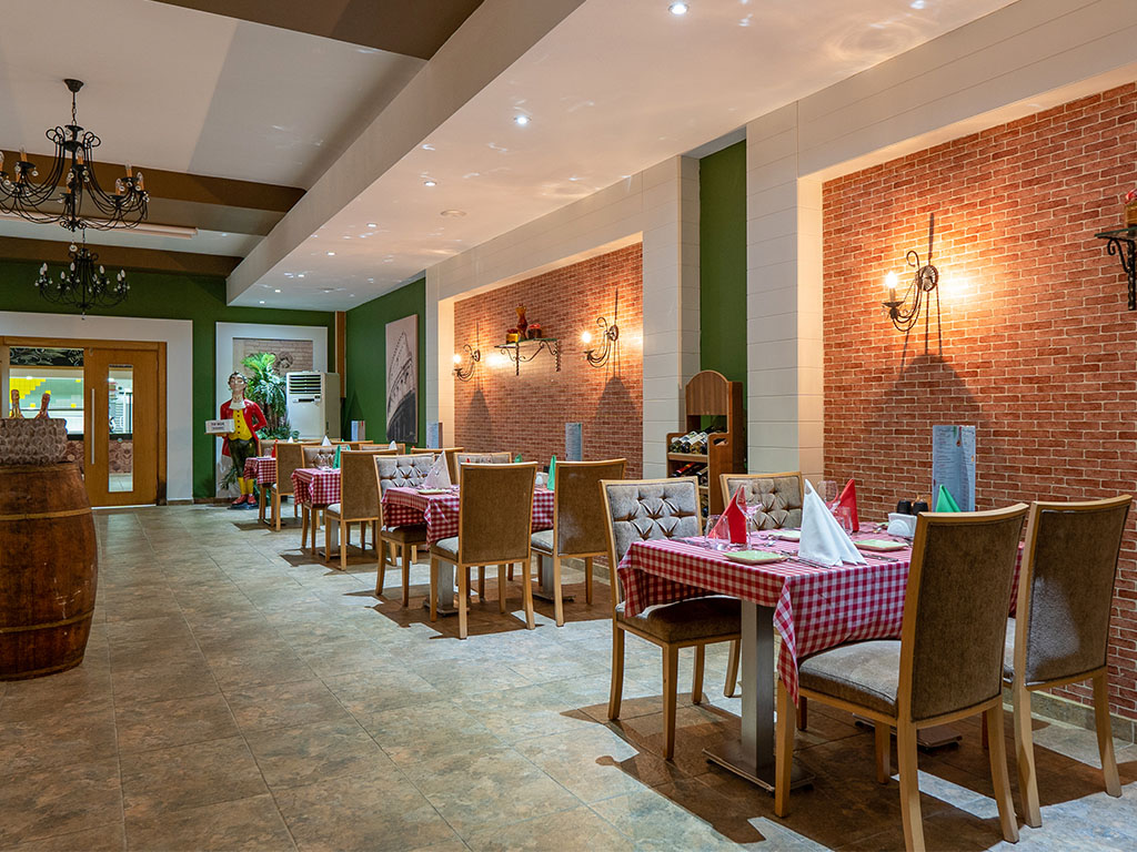 På Pegasos World behöver du inte oroa dig över en hög restaurangnota. Det mesta är ju redan betalt hemifrån genom All Inclusive-programmet. Till frukost, lunch och middag dukas stora bufféer med förrätter, sallader, bröd, grytor, turkiska och internationella rätter och ett stort urval av desserter fram i huvudrestaurangen. Du kan sitta inomhus eller ute på den stora terrassen och äta. I buffétrestaurangen är det ofta högt tempo och mycket hålligång! Show cooking-stationer finns både inne i restaurangen och på terrassen.