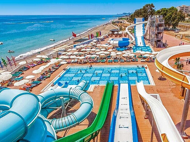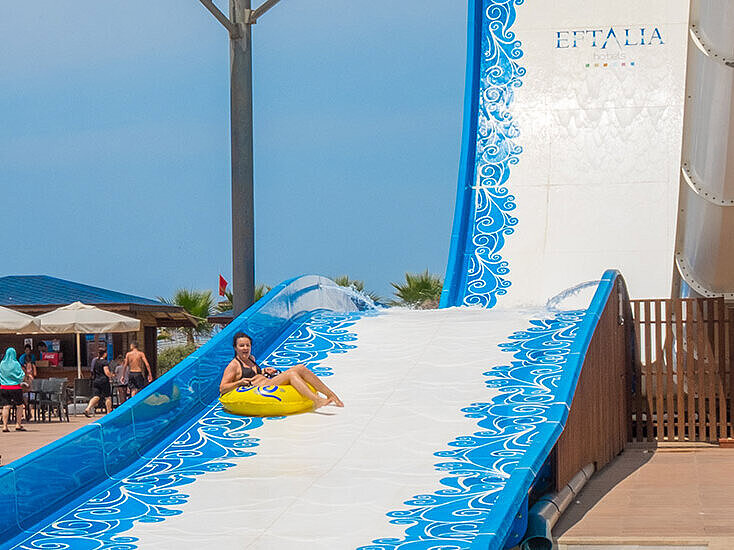 Du har aldrig tråkigt på Eftalia Island - den gigantiska beach cluben bjuder på elva roliga vattenrutschbanor, flera pooler och restauranger, underhållning och massor av skoj och plask i vattnets tecken.
